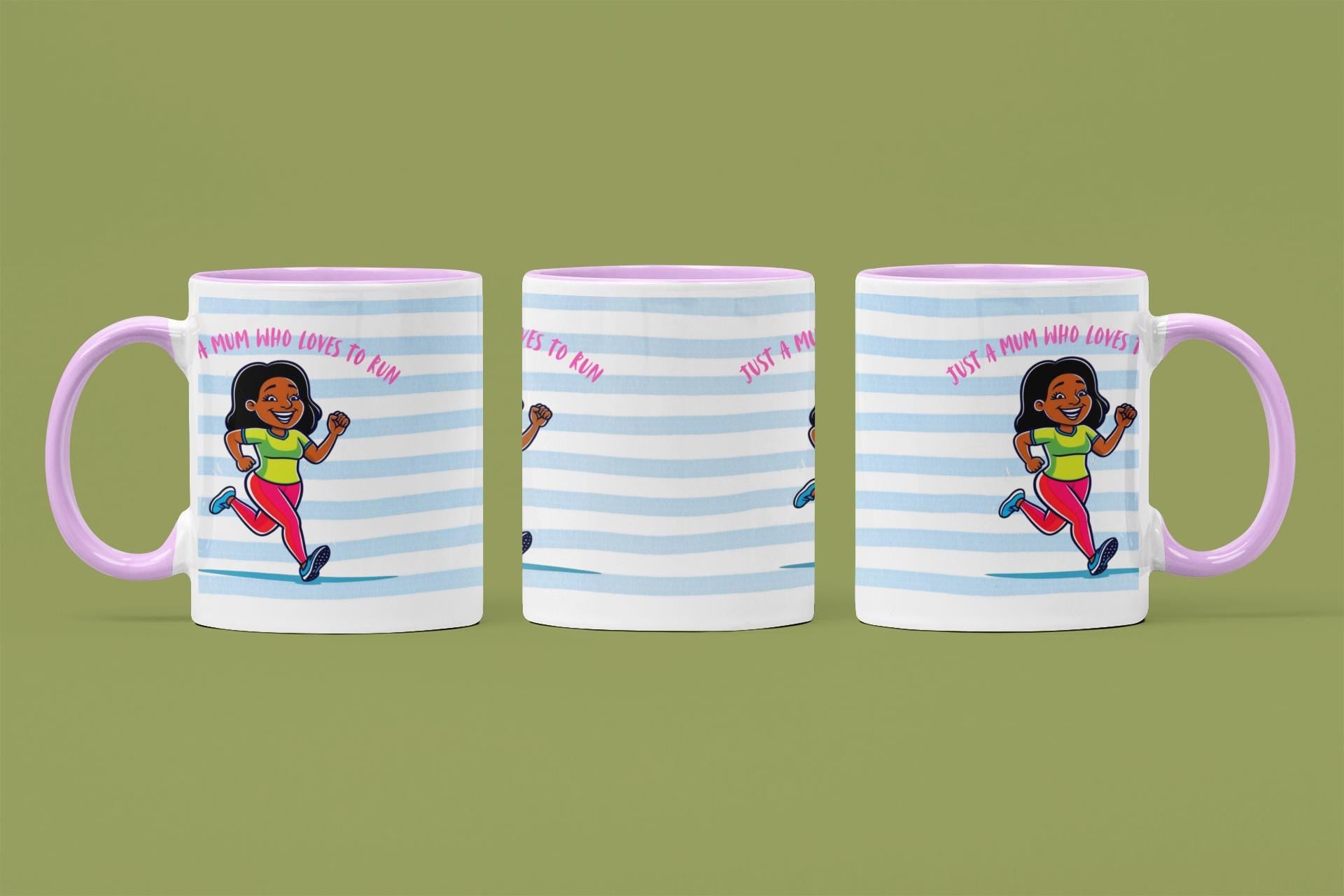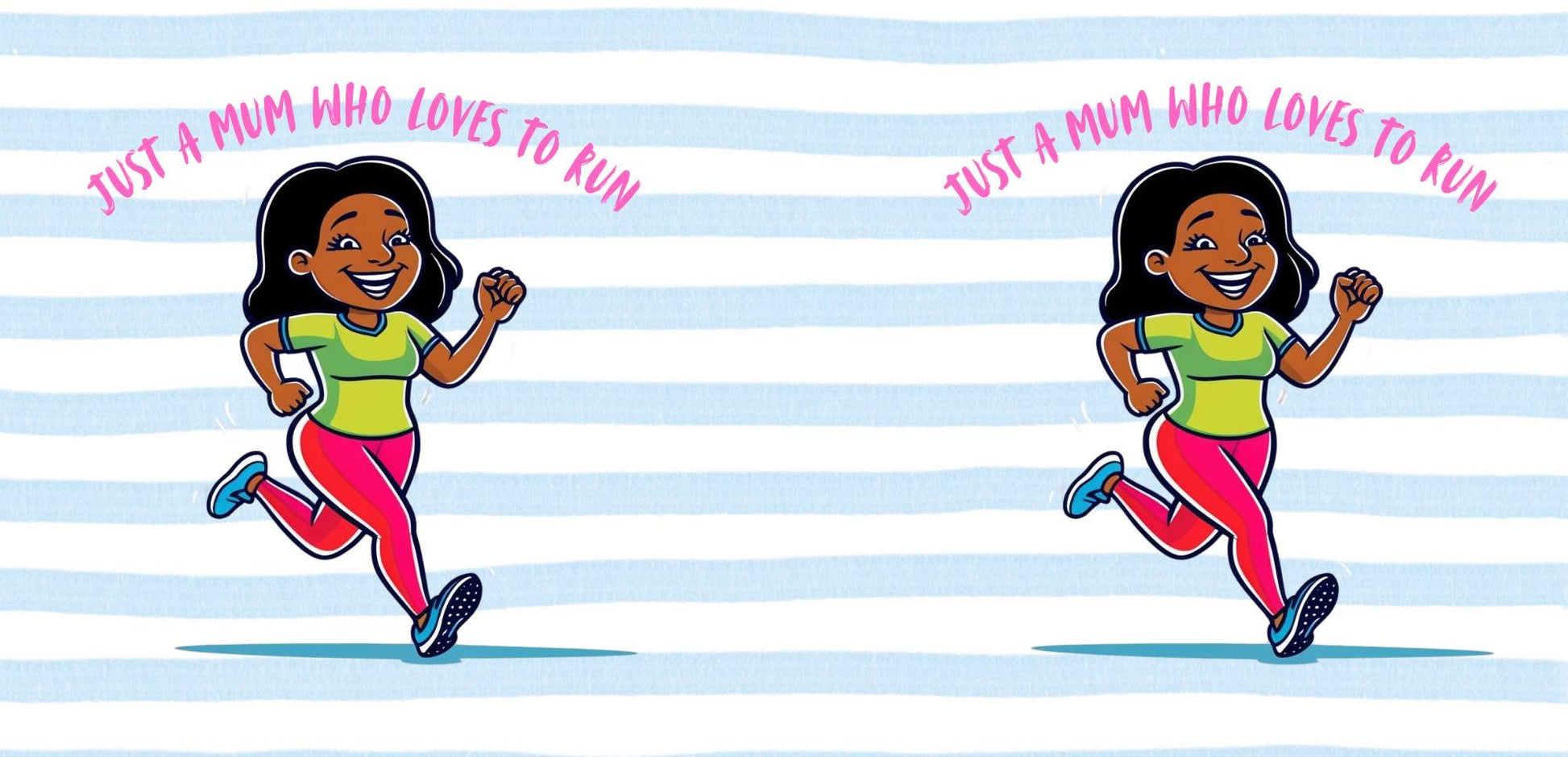 ✅ For Running Mums – Features the fun slogan “Just a Mum Who Loves to Run” in a stylish Blue stripe design – perfect for mums who love running, fitness, and staying active.