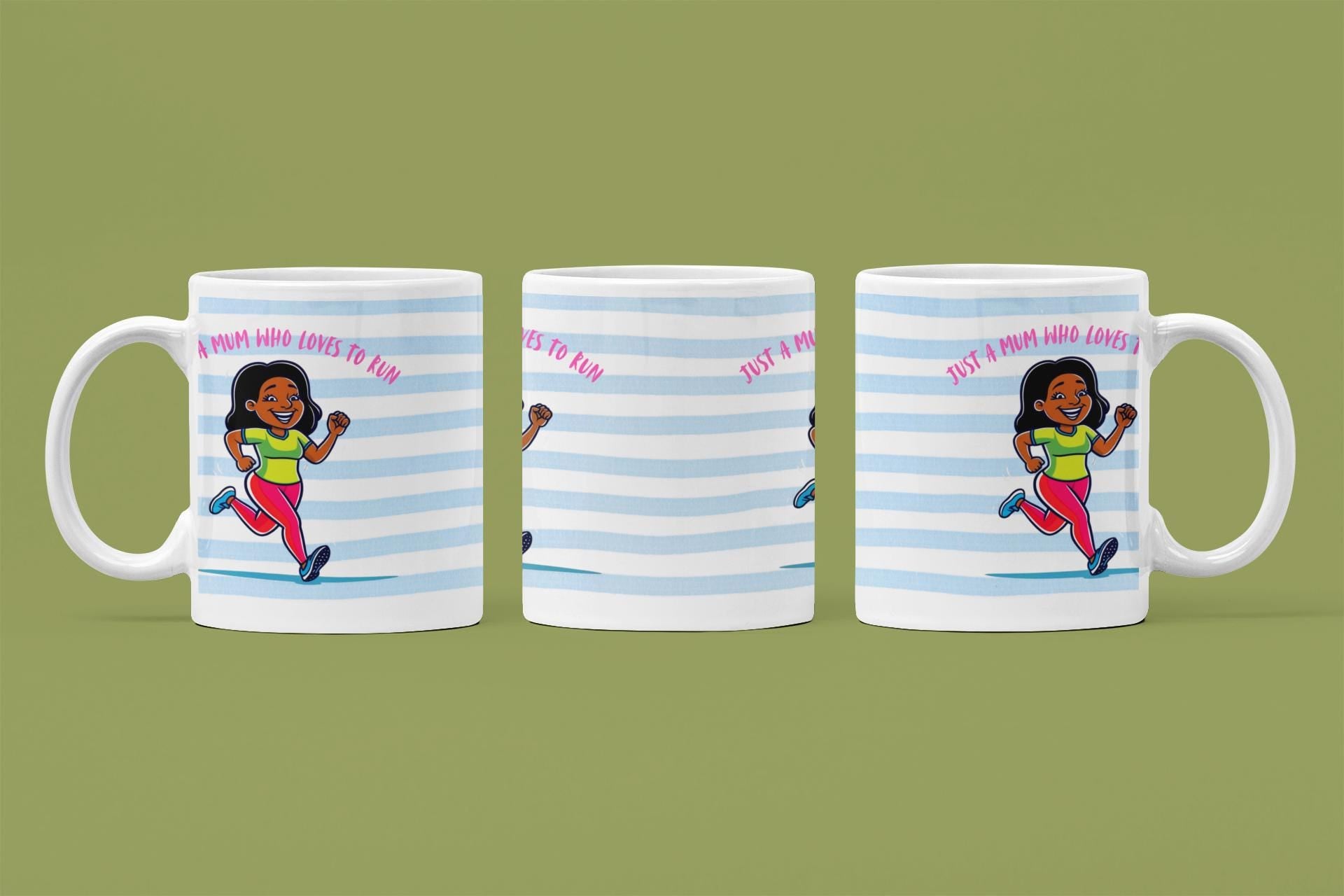 Just a Mum Who Loves to Run Mug: Blue Stripe Ceramic 11oz Running Gift