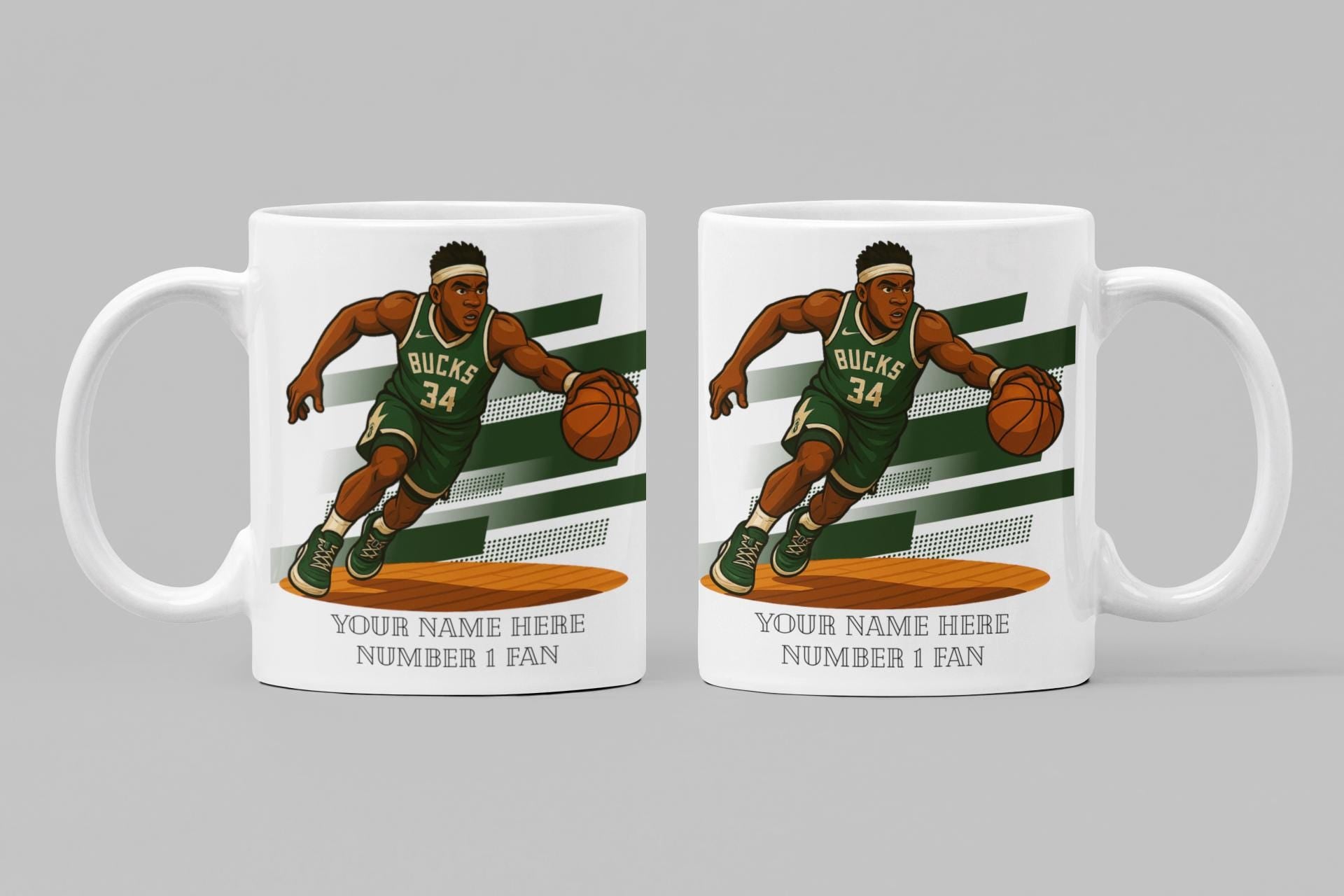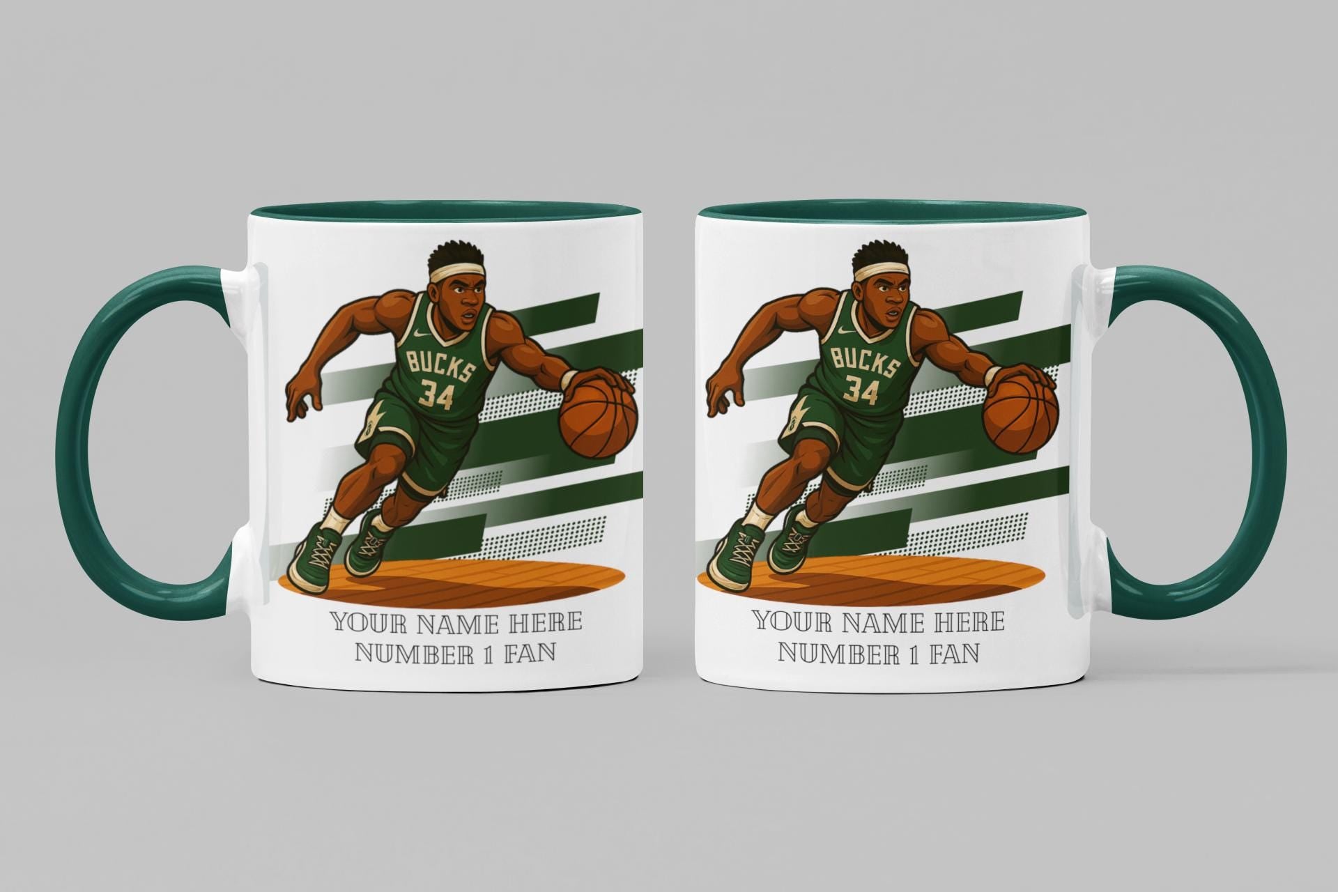 Personalised Milwaukee Bucks inspired Mug: Custom Name NBA Gift